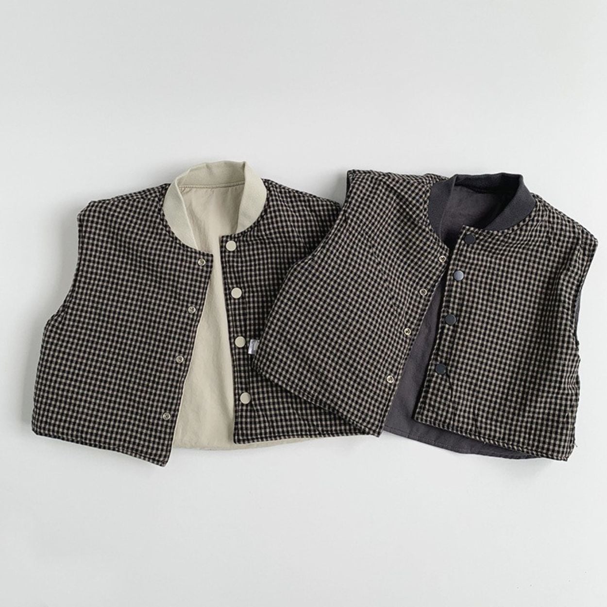 ベスト キッズ 前開き 中綿 リバーシブル 綿100% コットン 無地 チェック柄 ボタン 韓国 子供服 ジレ ライトアウター 羽織 アウター 薄手 男の子 女の子 かわいい おしゃれ 春 秋 冬 韓国子供服 90 100 110 120 130