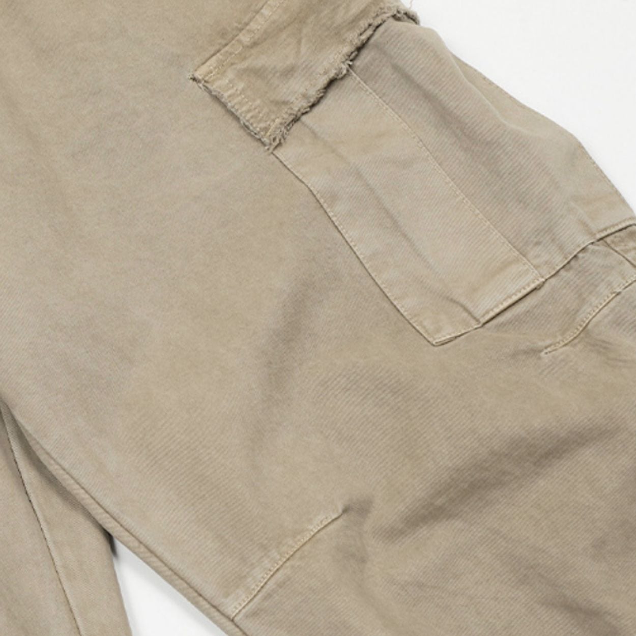 裾やポケットのフラップのダメージ加工により