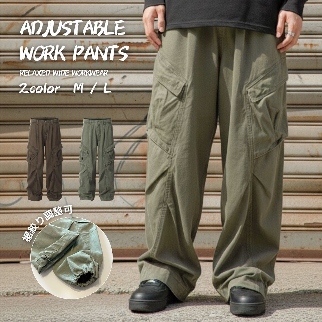 ワークパンツ メンズ ワイドパンツ ゆったり カーゴパンツ ミリタリー 綿100% 裾ゴム 裾絞り 6ポケット アジャスター付き ヴィンテージ ワークウェア 通年 作業着 作業服 コットン オールシーズン 大きいサイズ カーゴ 綿 ワイド ワークズボン アウトドア