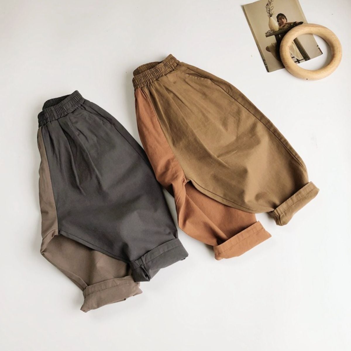 バイカラー コットンパンツ