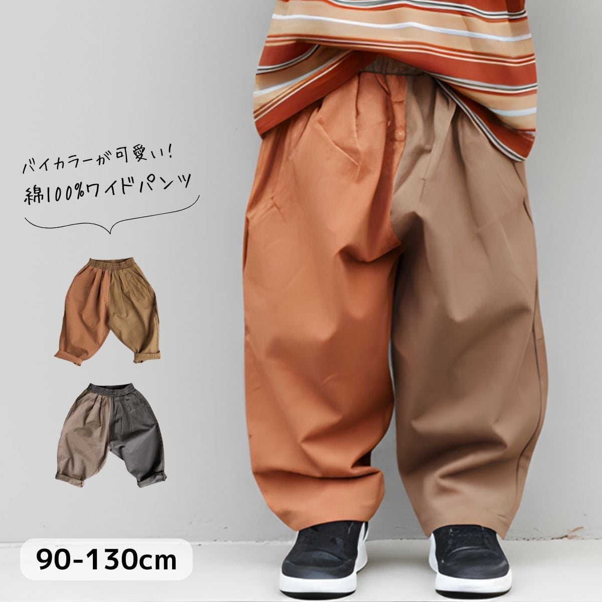 バイカラー ワイド パンツ キッズ 男の子 配色 コットンパンツ 綿100% ゆったり サルエルパンツ 薄手 夏服 無地 子供服 おしゃれ かわいい ロングパンツ ウエストゴム 通園 通学 90 100 110 120 130 春 夏 秋 ヴィンテージ 女の子 綿 ポケット ボトムス 長ズボン 黒 保育園 韓国子供服