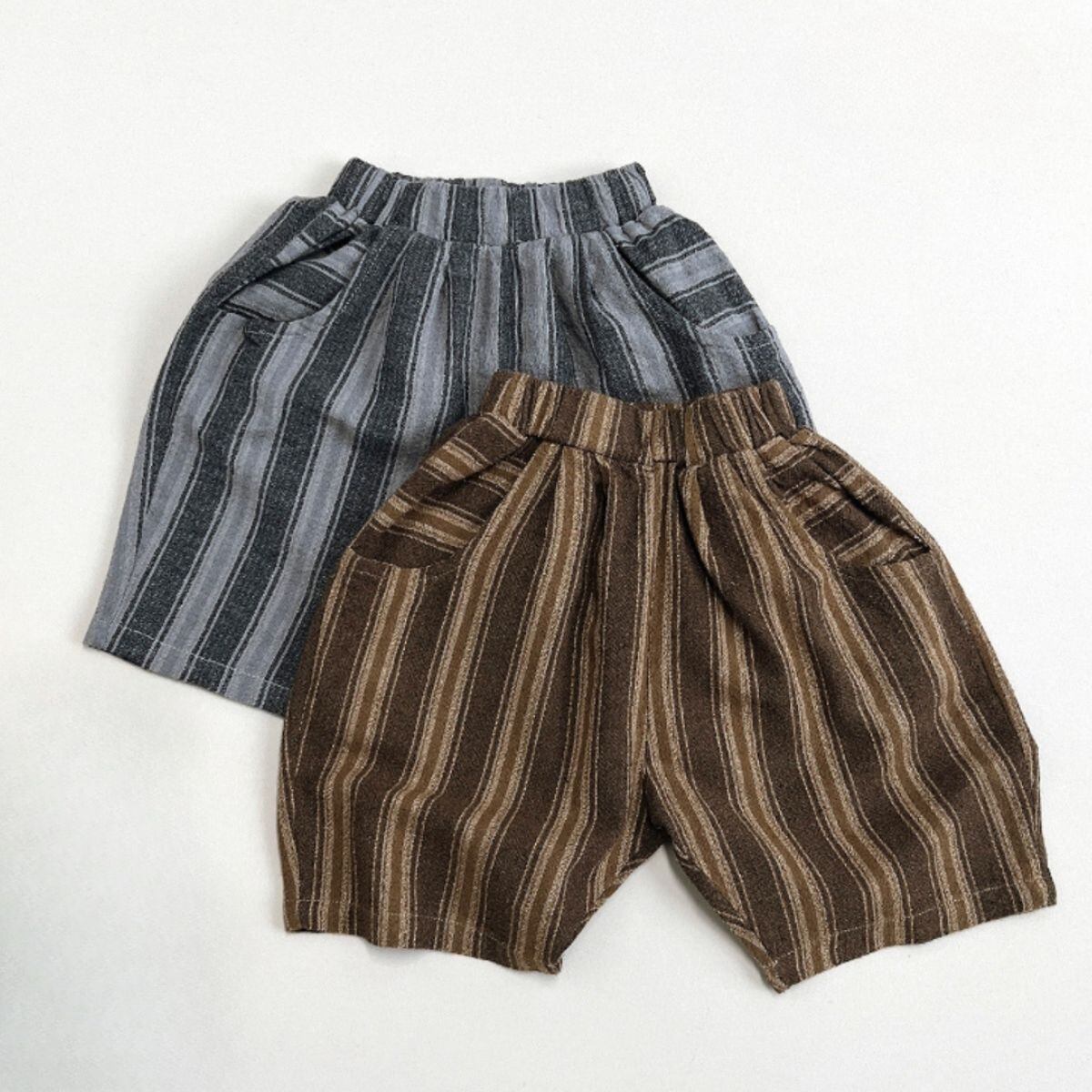 ストライプ パンツ キッズ ハーフパンツ 男の子 半ズボン 短パン 綿100% 夏服 ショートパンツ 5分丈 ウエストゴム ゆったり 子供服 おしゃれ ストライプパンツ キッズパンツ 90 100 110 120 130 ワイドパンツ 春 夏 韓国子供服 かっこいい 薄手 ポケット コットン 綿 保育園 キャンプ アウトドア